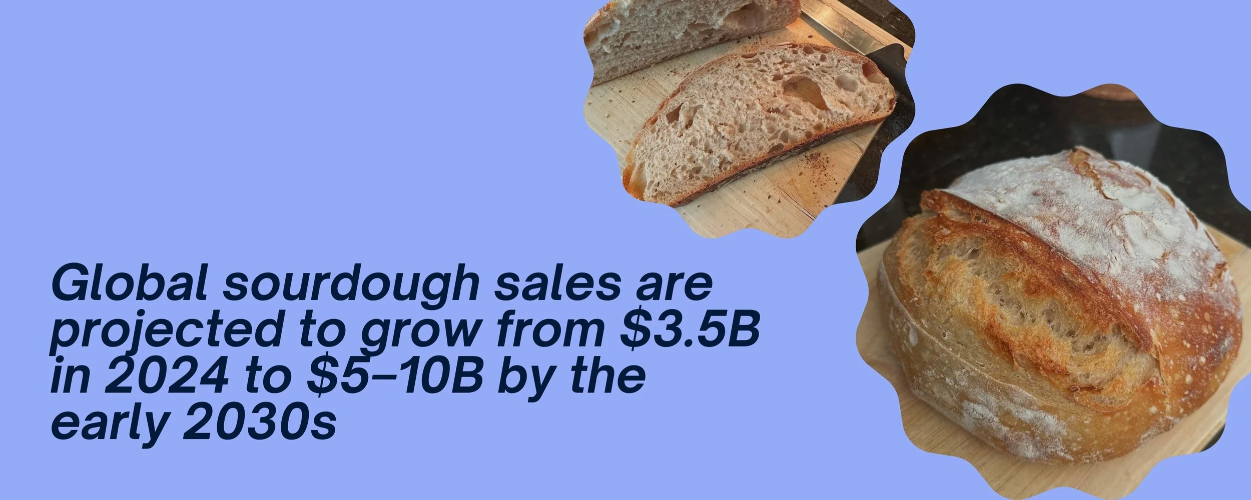 The sourdough market was valued at around $3.5 billion in 2024 and is projected to grow between 6–8% annually, reaching $5–10 billion by the early 2030s. That’s not just bread rising, that’s investor-level growth.